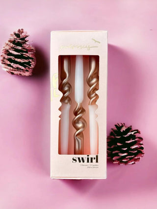 Enchant your space with the grace of ballet and the elegance of metallics! These dainty swirl set of 3 candles are a dance of sophistication, perfect for adding a touch of glam to your surroundings. Featuring delicate feminine shades of rose gold and pale pink and packaged in a lovely gift box, they're ready to give a performance of beauty for your home!