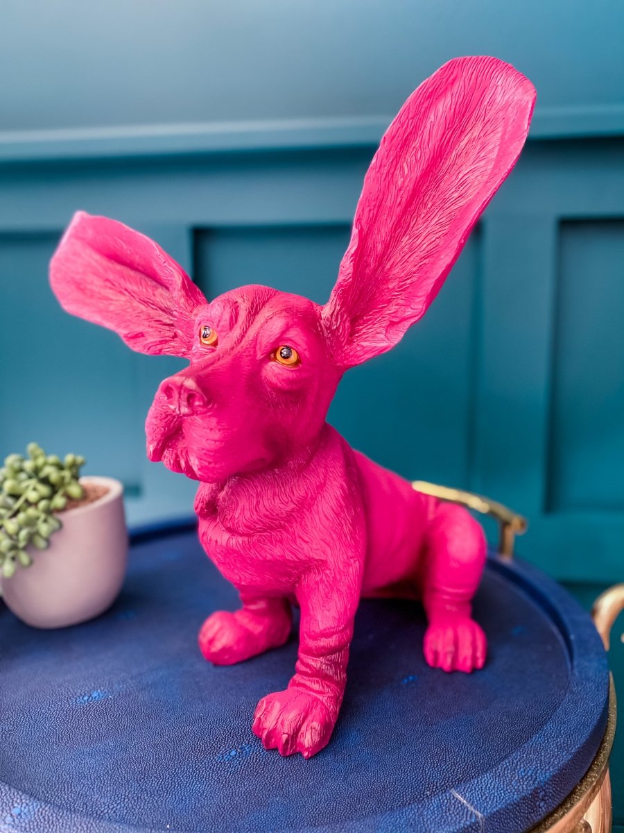 Who can resist this fabulous hint of eye candy? This playful, quirky decorative object, is sure to be a talking point of your room as well as putting a happy smile on everyone's face who sees it. In a stunning bright purple hue, this Basset Hound is a perfect way to add a bit of colour pop to your decor!