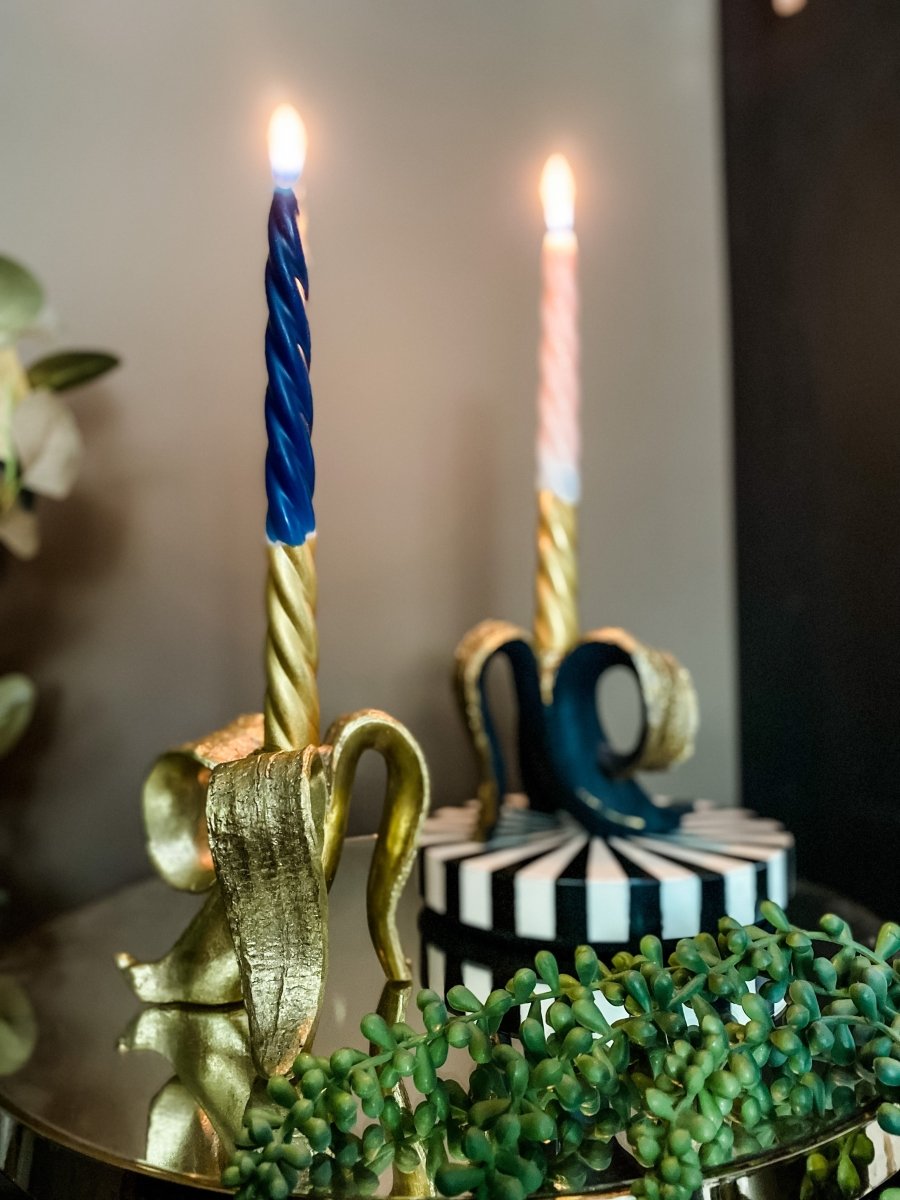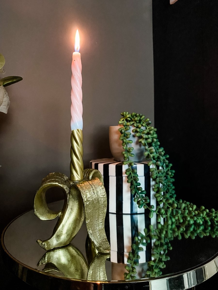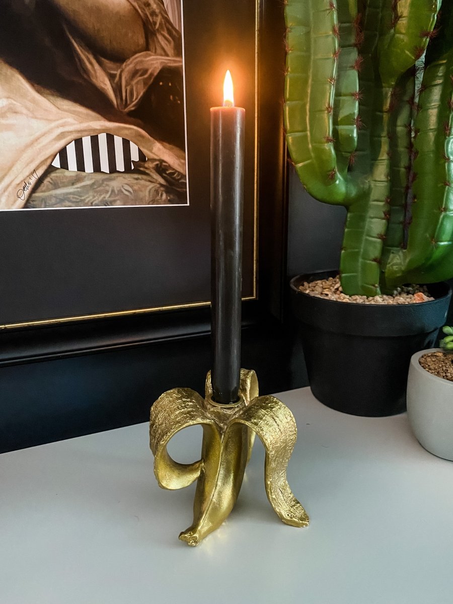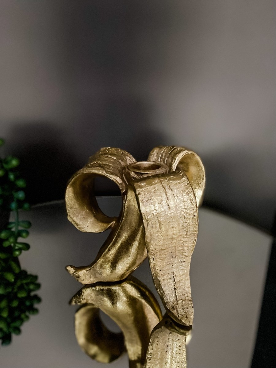 Give your home a daily dose of fruit with this quirky yet glam banana candle holder. Cheeky in its character, this is sure to add a playful element to your home. In a stunning gold metallic finish.
