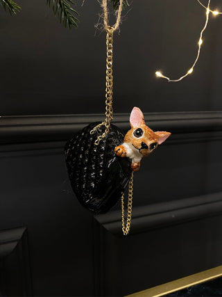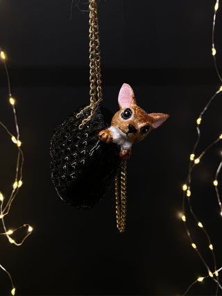 Give your tree a touch of posh with our Chihuahua in a Handbag Christmas Tree Decoration. This stylish little pooch is perched comfortably in a chic black handbag like it just stepped off a runway! Hang this fabulous furball on your tree and let it bring a sprinkle of glam and a whole lot of personality to your holiday decor.