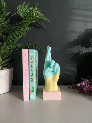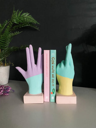 Colour up your decor! Whether giving the Vulcan salute or crossing fingers for good vibes, these playful pastel hand ornaments add whimsy and charm. Pair them up, and voila—stylish bookends to support your literary adventures. Let your space speak with these versatile and delightful hand accents!