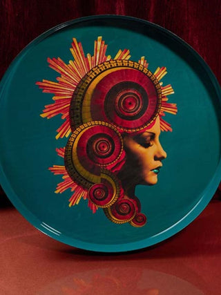 The vibrant and intricate details of this Muse Round Tray will add a touch of elegance and regal to any space. Encompassing of the designers love of graphic design and off beat humour, the stunning empress motif on a deep green enamelled background will bring some eye catching maximalist into your home. Get ready to elevate your tea time game!
