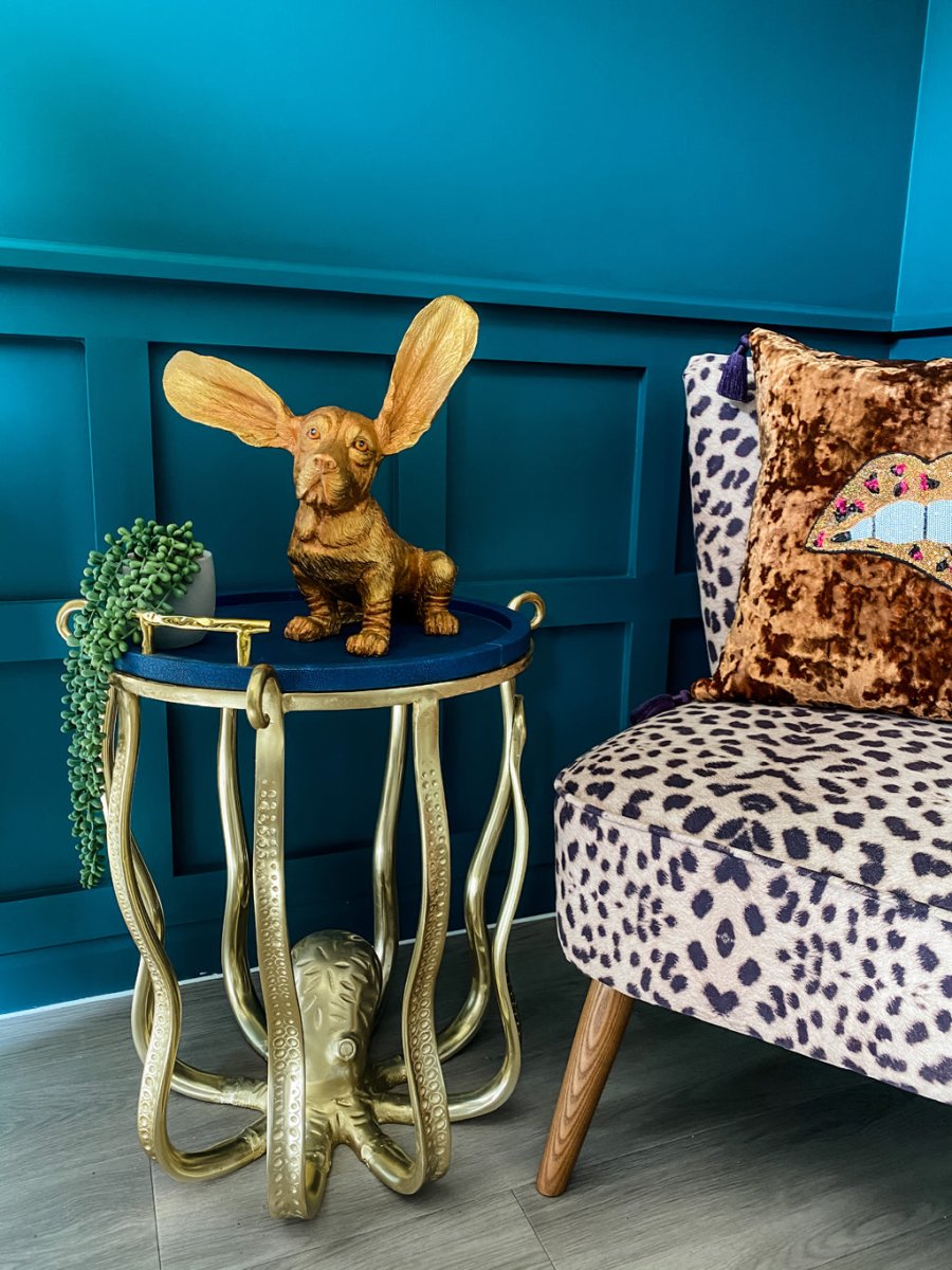 Home is where this Surprised Basset Hound Dog Statue is! This playful, quirky decorative object, is sure to be a talking point of your room as well as putting a happy smile on everyone's face who sees it. In a stunning antique gold hue.