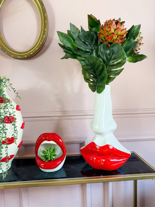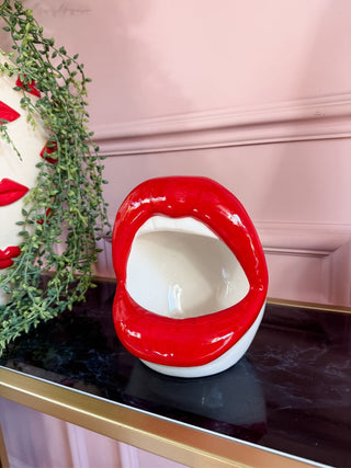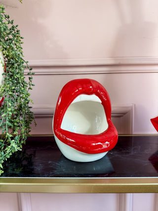 Style it on your vanity with a stack of pearls and a lash of attitude, or let it guard your biscuits in the kitchen like a flirty ceramic bouncer. Whether it's holding cotton pads or being used as a small planter, one thing is for sure, it's serving lip service in the best possible way.