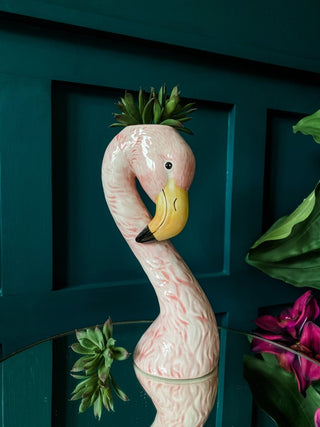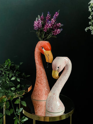Inject some delicious pink to your decor with this fabulous Flamingo Vase. Cute by itself or pair with its larger sibling for maximum tropical vibes. Due to its small stature, it is best suited as a bud vase to hold stem blooms.
