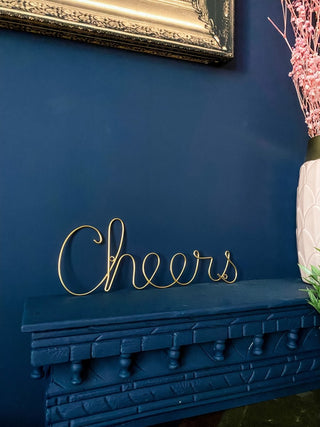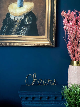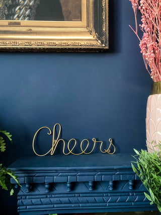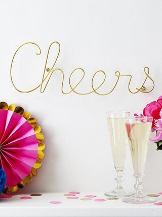 "Cheers"! We love to toast, even if it's just the clinking of cups of tea in the morning. Add some sass to a bar or kitchen work surface or anywhere else that takes your fancy with this Cheers Wire Sign. Made from gold electroplated wire, the tubing sits an inch off the wall casting a little shadow - literally standing out from the crowd!