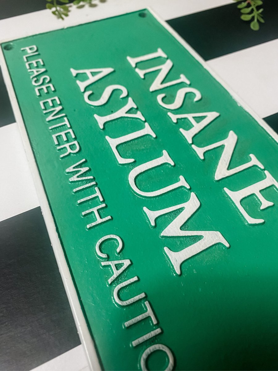 'Insane Asylum' Iron Wall Sign - Punk & Poodle
