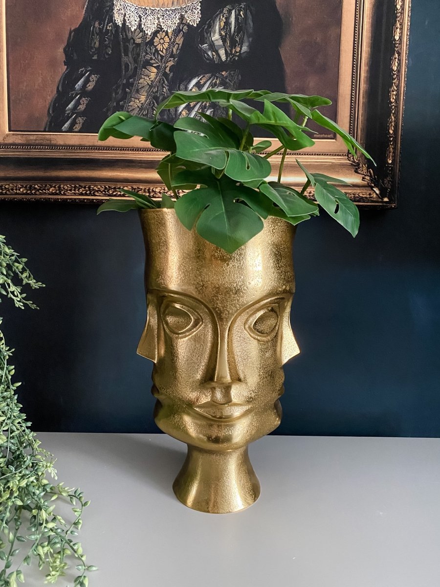 • We've got our eyes all over this one! This eclectic gold faces planter vase will bring high glamour to your favourite space. Perfect for cherishing your small plant or use it as a quirky fruit display bowl. This stunning planter vase features a 3D effect face design with a metallic gold finish. A stylish home accessory for sitting on a shelf, console table or mantelpiece.
