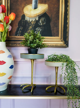 Our Claw Foot Planter Stand is a whimsical wonder perched on bird-like claw feet, ready to take flight with your favorite flora. Perfect for adding a quirky twist to your decor, this stand cradles your plants whilst turning any space into an enchanting botanical aviary. Style it in your living room with a vibrant monstera for a tropical touch, or in your sunroom with a cascading plant to create a whimsical jungle vibe. In two colour and size variations, each tray features a handpainted strip in shimmering gold for luxe appeal.