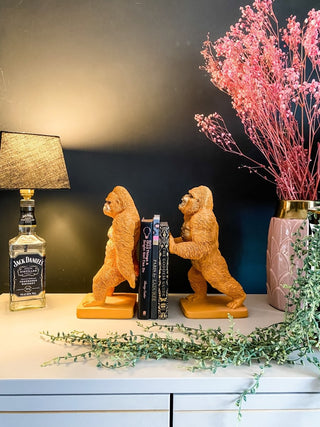 • These Gorilla Book Ends are something to go bananas about! We adore their vibrant bold orange colour perfect for adding a pop of colour and some rock 'n' roll styling to your interiors. Made from a beautifully textured resin featuring a dusting of gold on the chest and face. We dare you to add this fabulous duo to your book shelf and not be joyed everytime you see them.