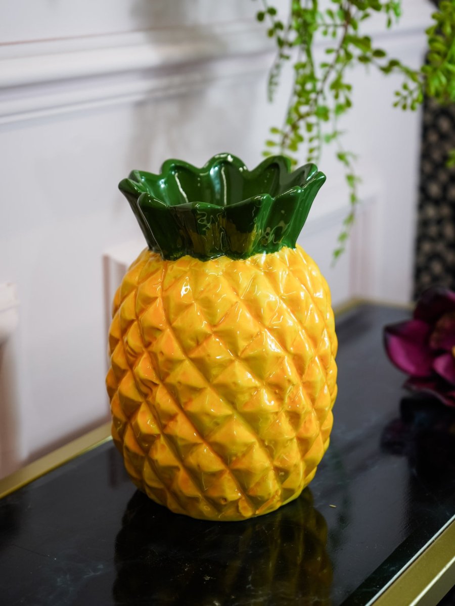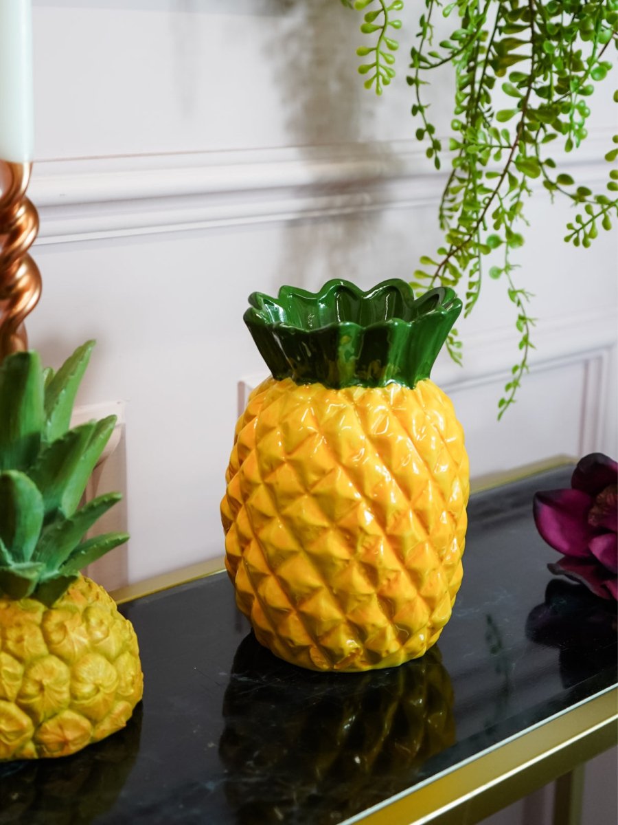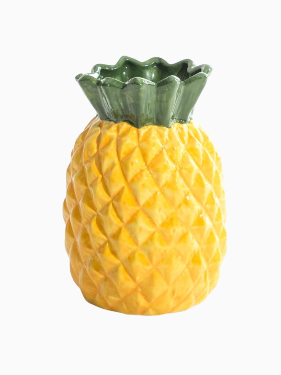 Add a splash of fruity and fiesta fun to your decor with our Pineapple Ceramic Stem Vase. It's the perfect little accessory for your living room or as a centerpiece on your dining table to instantly create a tropical ambiance. Pair it with bold, vibrant flowers like birds of paradise or hibiscus to accentuate its tropical vibe, or go for a minimalist and display it solo. This playful vase promises to bring a touch of sunshine and a dash of paradise to your decor.