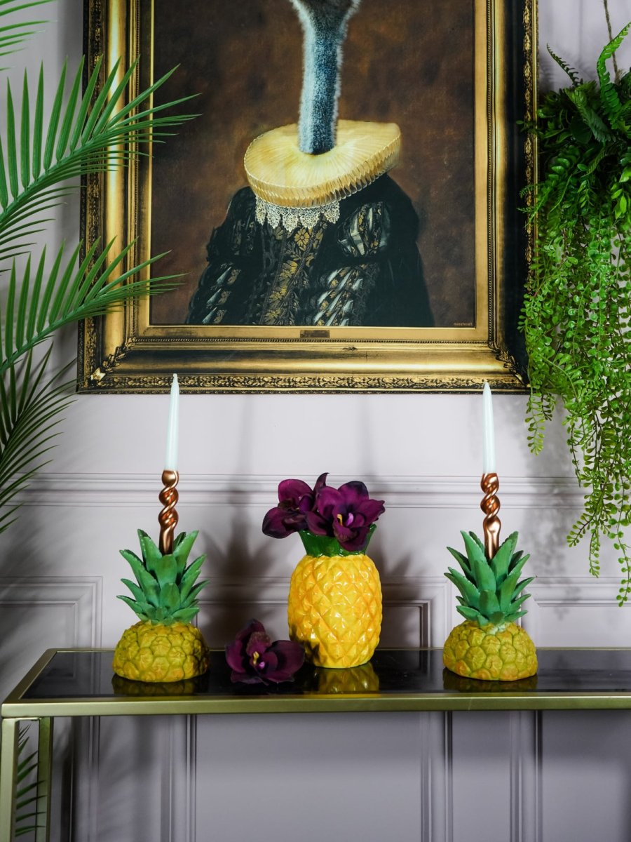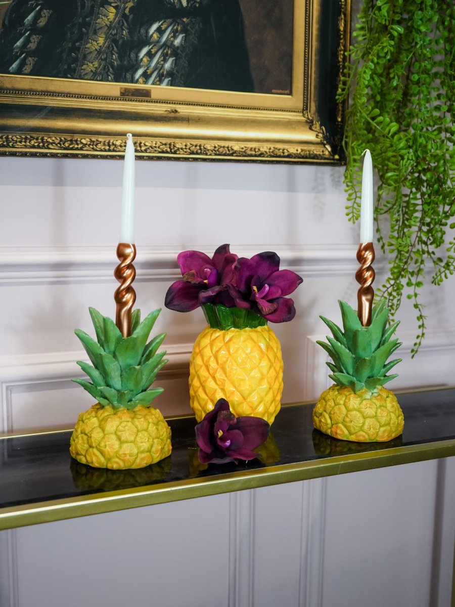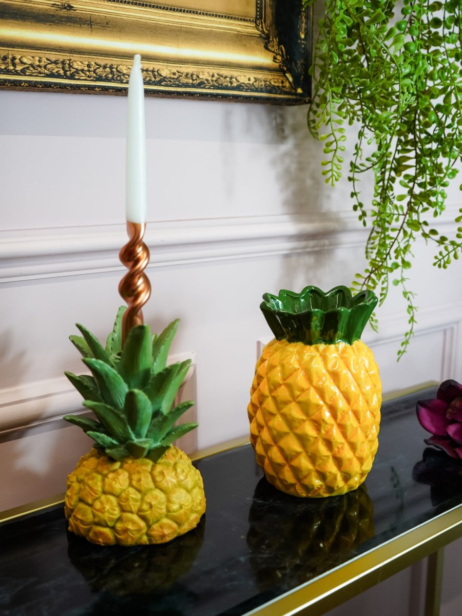 Add a splash of fruity and fiesta fun to your decor with our Pineapple Ceramic Stem Vase. It's the perfect little accessory for your living room or as a centerpiece on your dining table to instantly create a tropical ambiance. Pair it with bold, vibrant flowers like birds of paradise or hibiscus to accentuate its tropical vibe, or go for a minimalist and display it solo. This playful vase promises to bring a touch of sunshine and a dash of paradise to your decor.