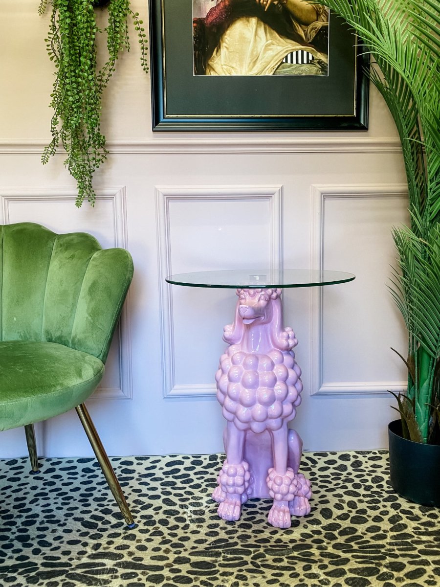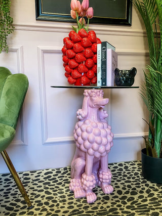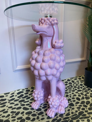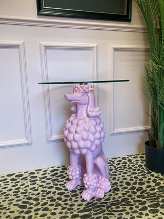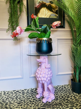 Say hello to the most fabulously frivolous furniture piece you’ll ever own! Our Pink Sitting Priscilla Poodle Glass Top Side Table is the epitome of kitsch and glamour. This quirky canine is ready to bring some serious sass to your living space. With her perfectly sleek glass top perched atop a playful poodle base in pink. she’s certainly a statement. Style her next to your favorite armchair as the ultimate conversation starter or let her steal the show in your entryway. Because who needs ordinary when you can have Priscilla?