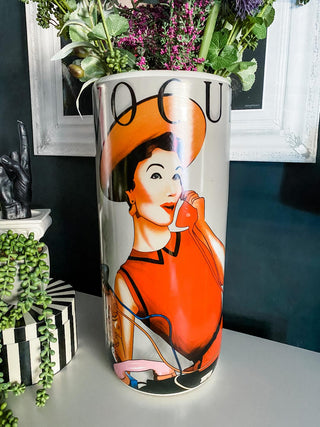 We're huge lovers of vintage french advertising so we couldn't resist this beauty of an umbrella stand. Featuring a transfer printed vintage Vogue design, this umbrella would make a quirky and glamorous addition to your hallway or porch. We also love it as a large vase, perfect for holding tall faux leaves or grass pampas.