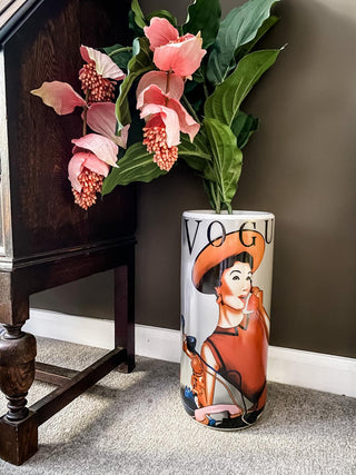 • We're huge lovers of vintage french advertising so we couldn't resist this beauty of an umbrella stand. Featuring a transfer printed vintage Vogue design, this umbrella would make a quirky and glamorous addition to your hallway or porch. We also love it as a large vase, perfect for holding tall faux leaves or grass pampas.
